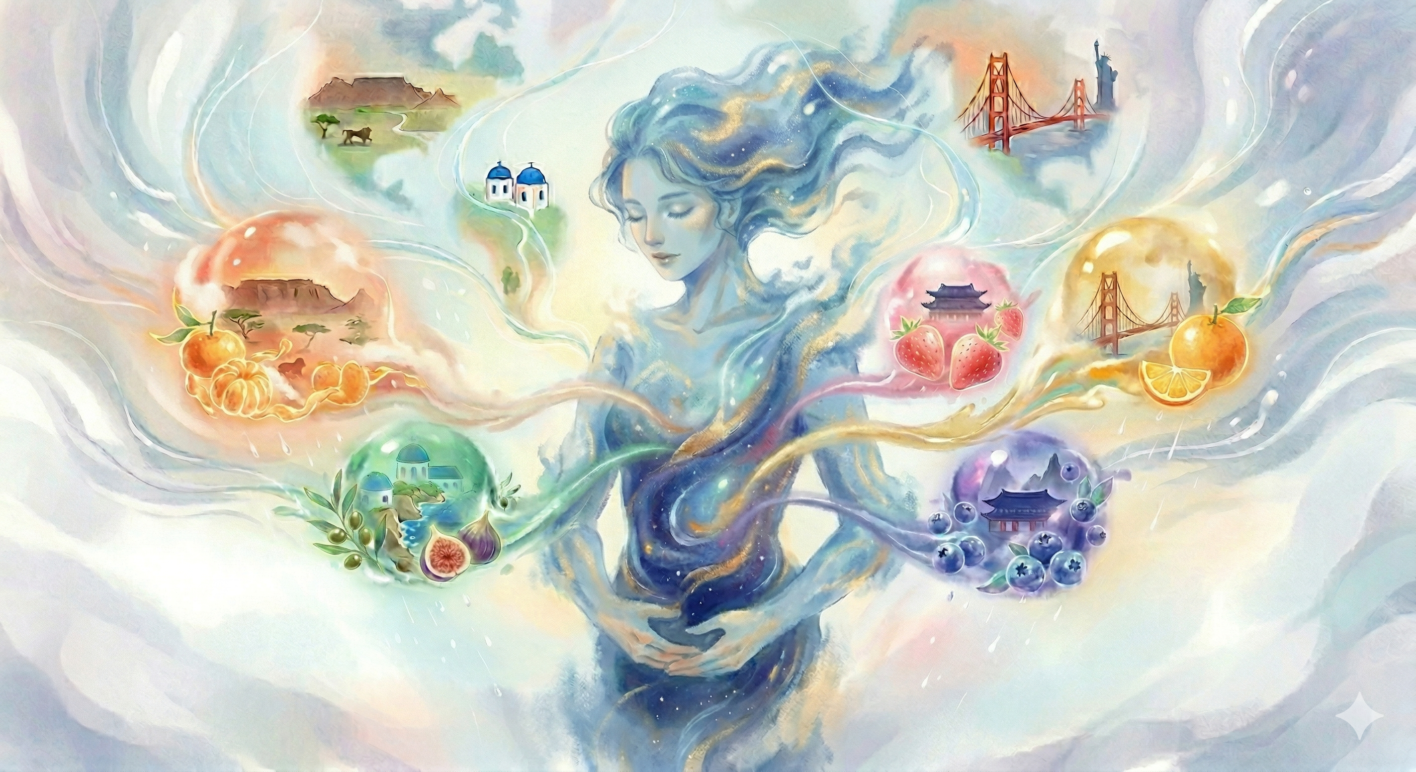南非的柑、希腊的果、中国的蓝莓、韩国草莓与美国橙。