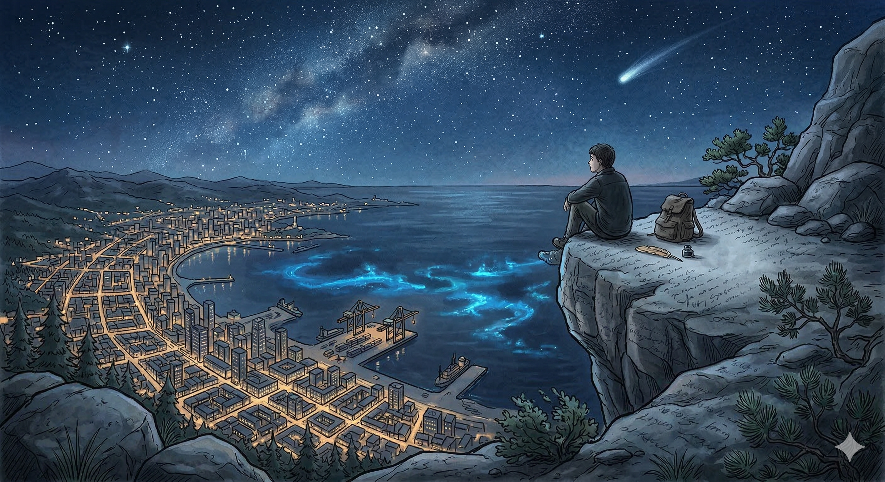 城市在脚下延展,海在远处缓慢移动,而天光仿佛停在很高的地方。